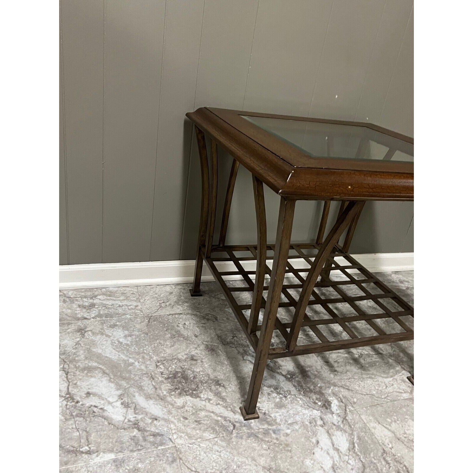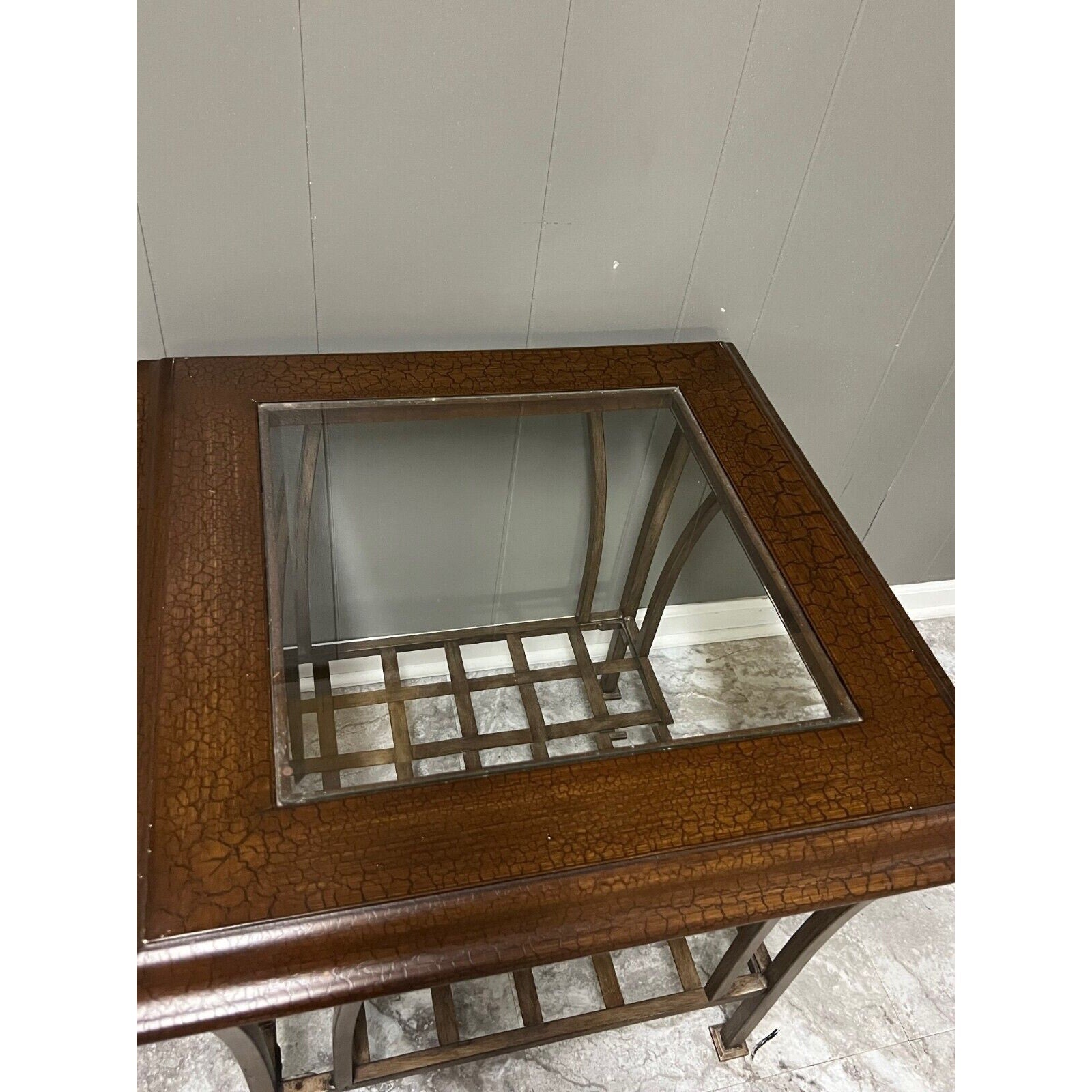 Solid Wood and Glass Top Table with Metal Base 26 x 25 in Sturdy!